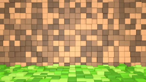 3D Minecraft landschap met bruine blokken