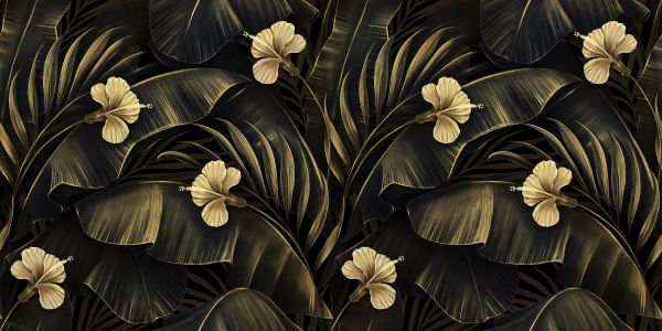 Gouden hibiscus in different materials