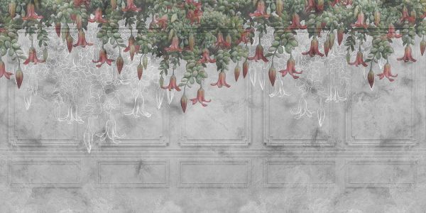 Klassieke grijze lambrizering met bloemen in different materials