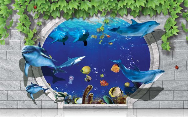 Dolfijnen door de muur