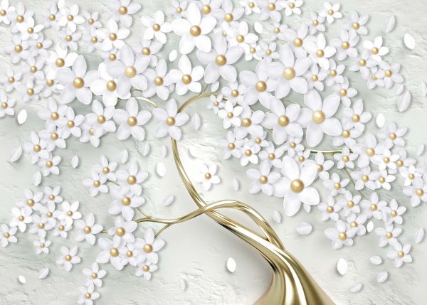 Fotobehang - Wit gouden bloemen