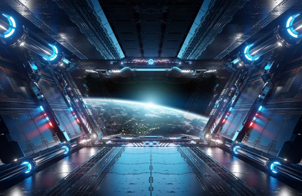 Zicht vanuit een ruimteschip